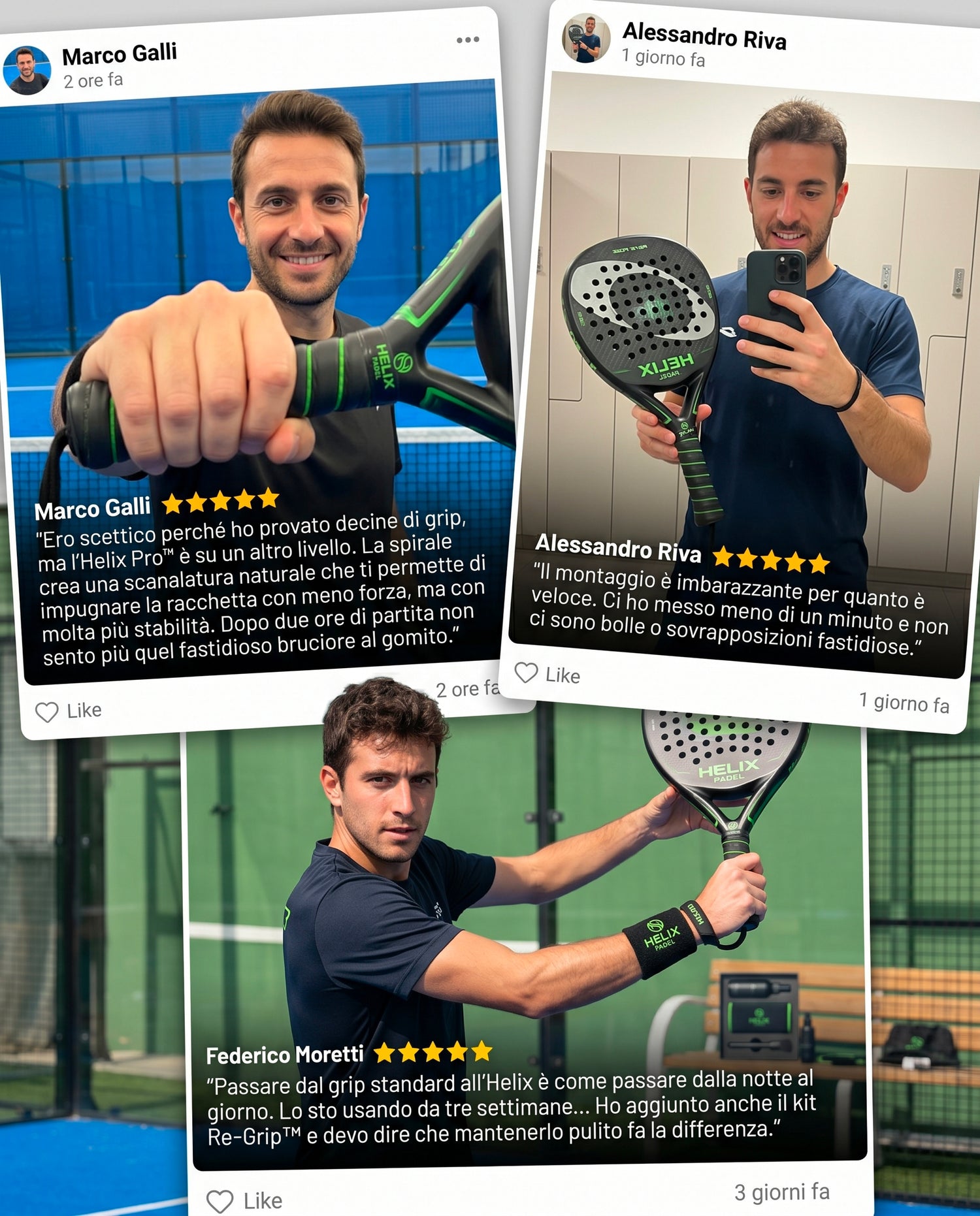 “Da quando uso Helix, la mia mano è un tutt’uno con la racchetta. Non tornerei mai indietro.” - Lorenzo D.